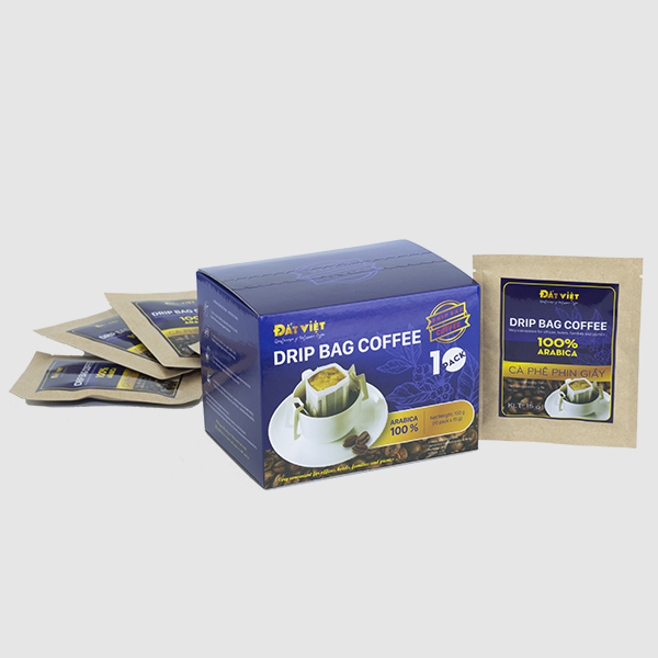 Cà phê phin giấy (drip bag coffee) là cà phê rang xay nguyên chất dạng bột được cho vào trong túi lọc giấy và sử dụng nhanh chóng mà không cần dụng cụ pha chế. Cà phê phin giấy của Cà phê Đất Việt sử dụng phin giấy đặc biệt, tiện lợi, không độc hại…